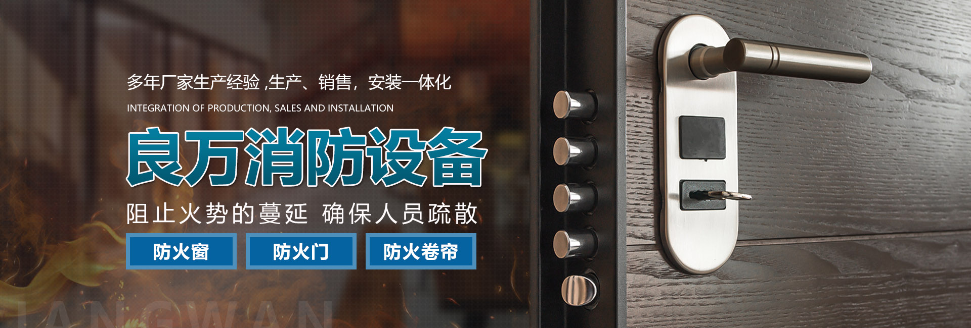 合肥良萬消防設(shè)備有限公司位于合肥市包河工業(yè)園,生產(chǎn)銷售安裝:防火門、防火卷簾門、防火窗等消防安全產(chǎn)品。公司具有研發(fā)、設(shè)計(jì)、生產(chǎn)、銷售、及安裝服務(wù)的綜合配套能力。合肥良萬消防設(shè)備有限公司技術(shù)力量強(qiáng),設(shè)備齊全,產(chǎn)品不斷創(chuàng)新,以信譽(yù)立業(yè),客戶滿意是我們永無止境的追求。我們在保證產(chǎn)品質(zhì)量的同時(shí),也十分注重售后服務(wù),保證消防安全產(chǎn)品的正常運(yùn)行。公司始終堅(jiān)持誠信為本的企業(yè)宗旨,真誠希望與社會(huì)各界新老客戶精誠合作,良萬愿與您攜手共創(chuàng)輝煌!